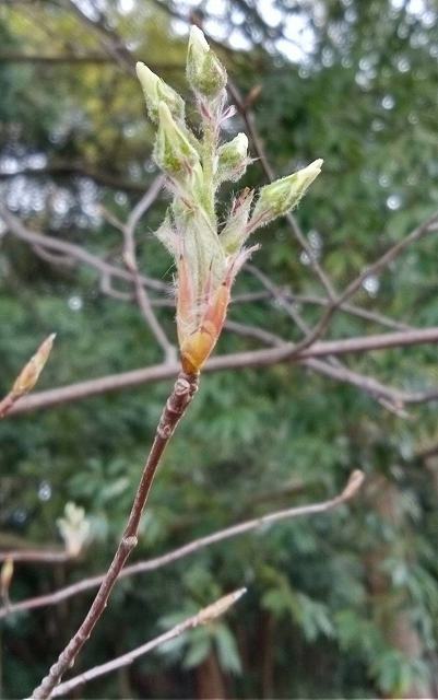 冬芽は水滴形 芽鱗の間から白毛がはみ出している