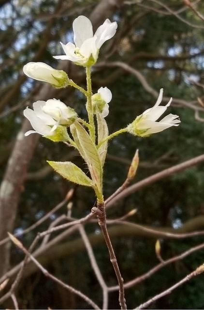 バラ科の小高木。春、若葉の開く前に純白の花が咲き誇り、樹は花で真っ白になる。実は直径6mmで、秋熟すると黒紫色になり生で食べられる。