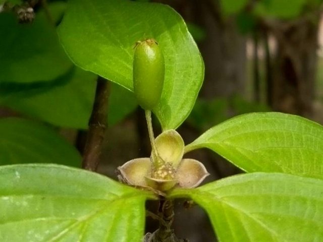 花芽は先が尖った球形で、褐色の総苞片4枚が蕾を包む