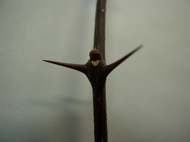 葉痕の両側にある鋭いトゲは、托葉が変化したもの
