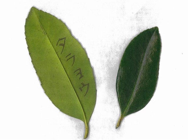 葉の裏にとがったもので字を書くと黒く浮き上がる