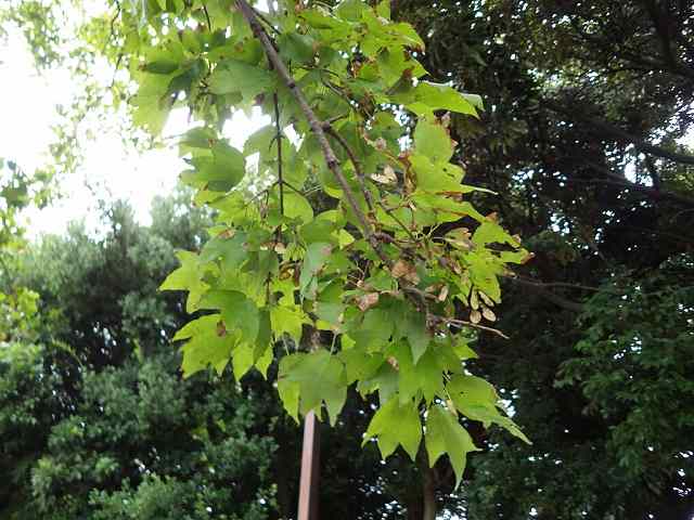 ムクロジ科の落葉高木。中国(唐=とう)原産で、江戸時代に日本に入り、紅葉が美しいので、庭木、街路樹として植えられている。葉の形から「三角カエデ」ともいう。春に散房状に淡黄色5弁の花をつける。翼果(よくか)はU字形で開かない。樹皮は灰褐色で縦向きに激しく剥がれ荒々しい。