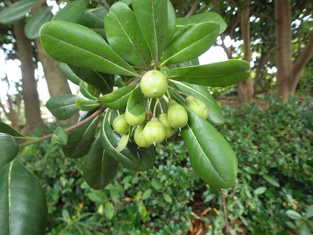 暖地の海岸地方にはえるトベラ科の常緑低木。雌雄異株(しゆういしゅ)。葉は枝の上部に密生してつく。花は白色で小枝の先に集まって開くが、のち黄変する。実は熟れると3つに割れて種子が現れる。種子は赤い粘液に包まれてべたつく。