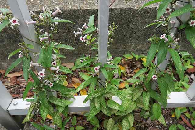 花は枝の先や葉のわきにまばらにつく